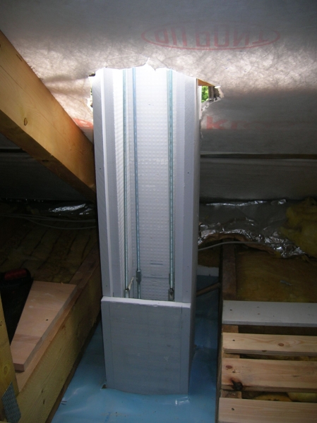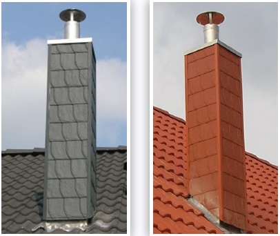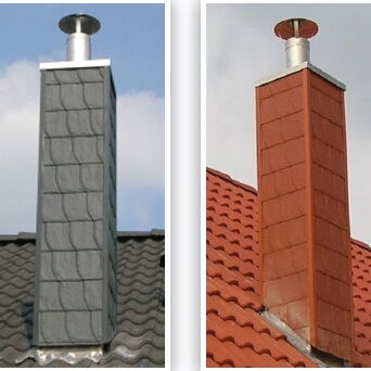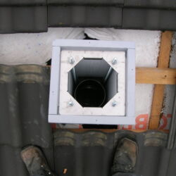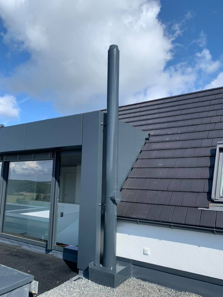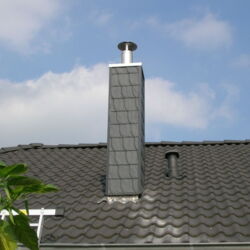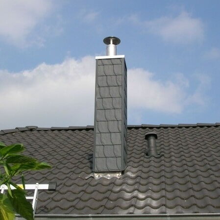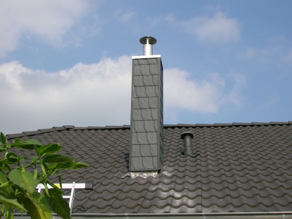 Montage Leichtbauschornstein, über Dach Stülpkopf Schieferoptik
